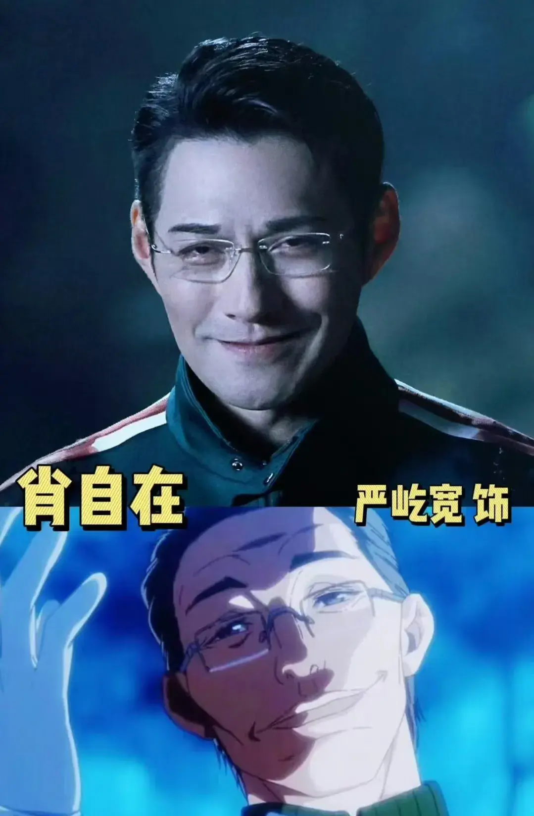 剧照中,肖自在戴副眼镜,那诡秘阴郁的一笑,瞬间有种令人毛骨悚然的感觉。